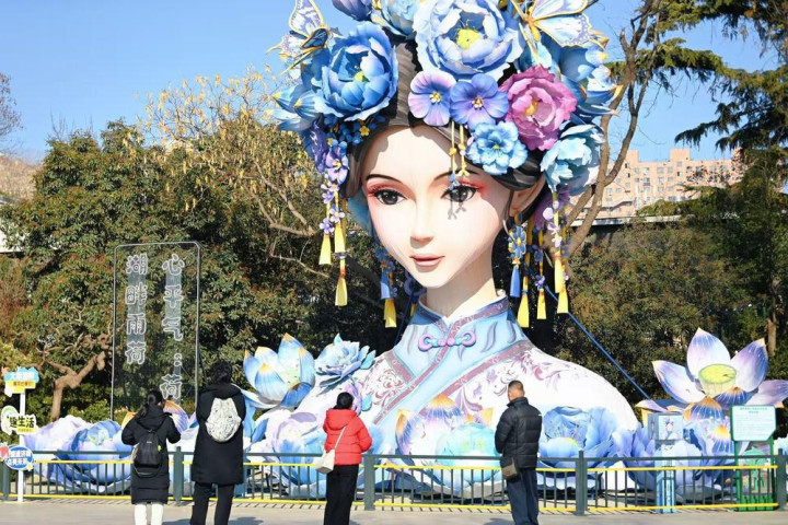1月7日,泉城的冬日阳光洒落在大明湖畔,游客们纷纷在大明湖北岸的“湖畔雨荷2.0”大型花灯前拍照打卡,赏灯热情高涨。