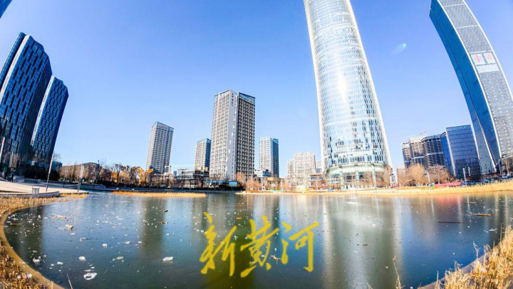 1月7日,济南中央商务区(CBD)核心区内,被五座超高层建筑“五指山”环抱的荷叶湖出现了全湖冰封的景观。